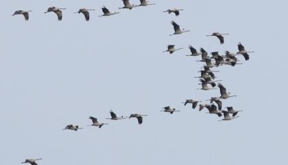 Op 24 februari passeerde een forse golf Kraanvogels.