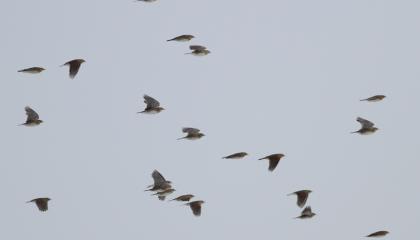 Grote aantallen Veldleeuweriken, ondanks (of: dankzij?) de matige weersomstandigheden.