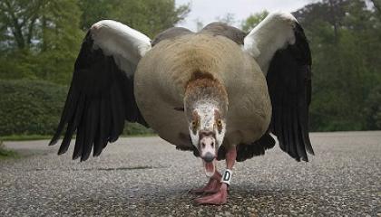 Niet alleen Buizerds, maar ook Nijlganzen vallen hardlopers aan. Een verslag van vogelaar Hans van Ooijen.