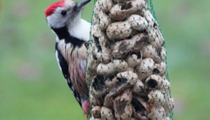 • Hij doet het wat minder vaak dan zijn grote neef, maar ook de Middelste Bonte Specht eet graag mee van de voedertafel. Dat merkte een gelukkige bewoner in de regio Nijmegen.